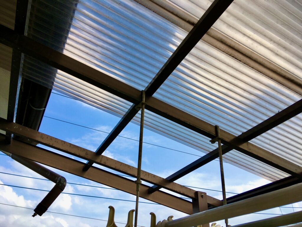 テラスやカーポート、作業場などの屋根に使われる波板やポリカは、光を通して明るさを確保できて、比較的低コストで設置できるのが魅力です。